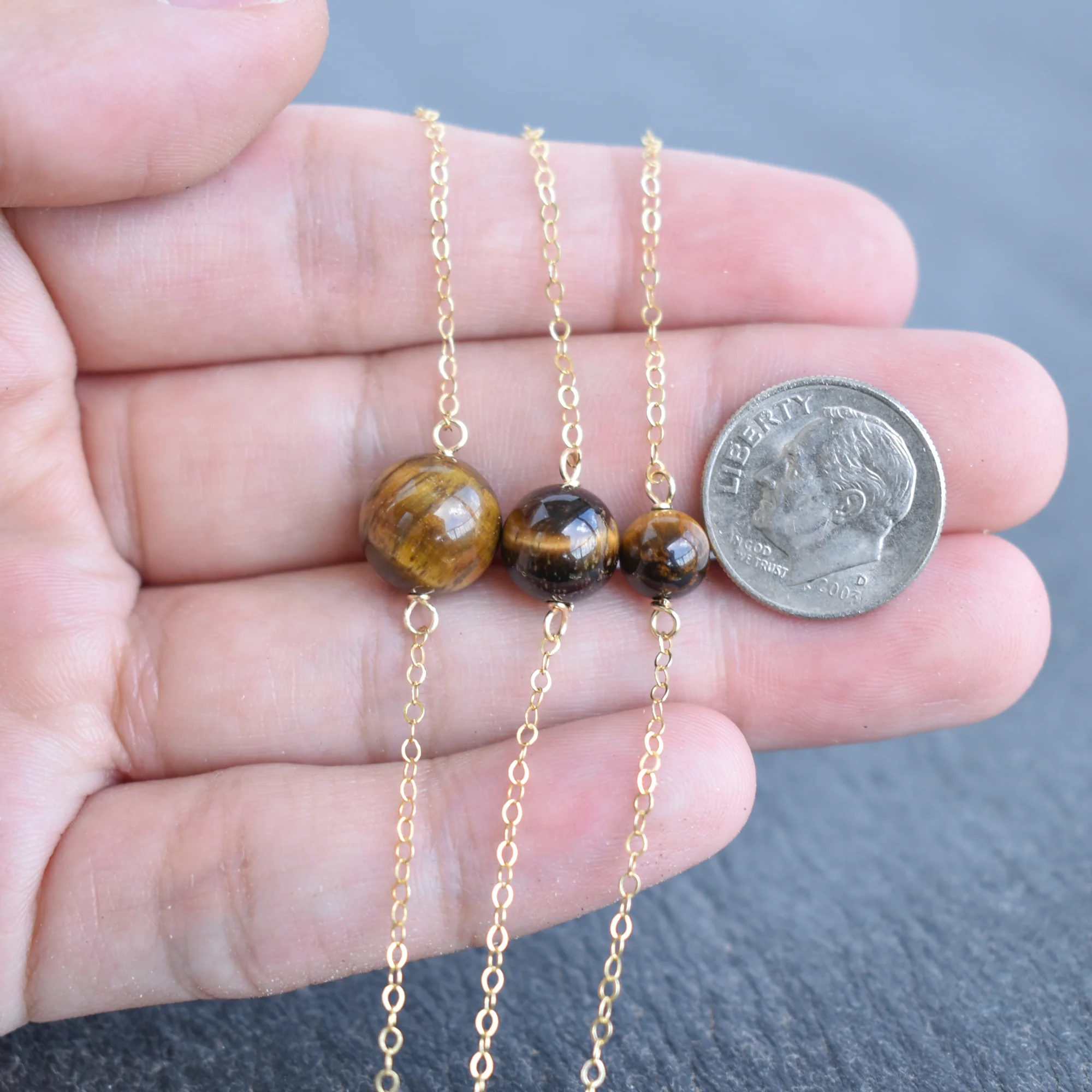 Gemstone Tiger Eye Station Necklace - Pick One 6mm/8mm/10mm
