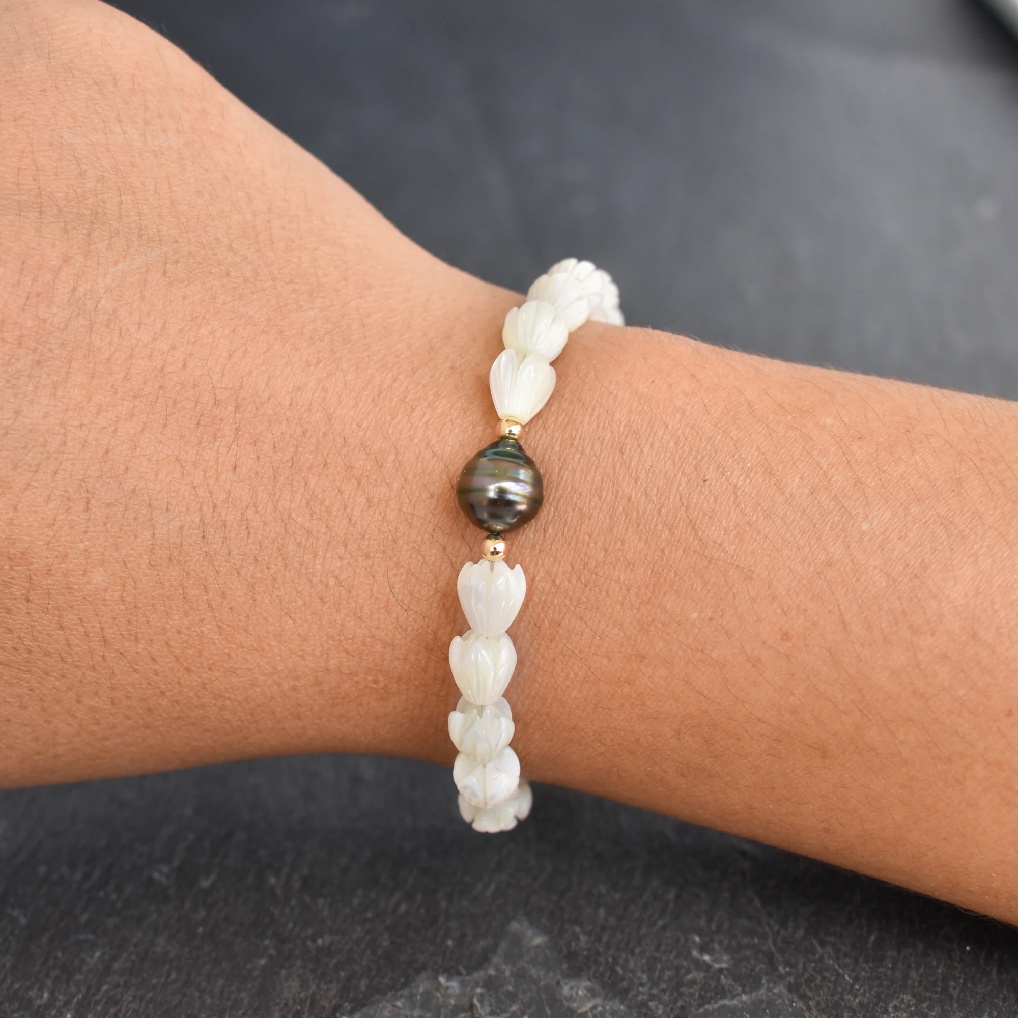 Small Pikake Stretchy Bracelet w/ One Circlé Tahitian Pearl - Adult or Child Sizes
