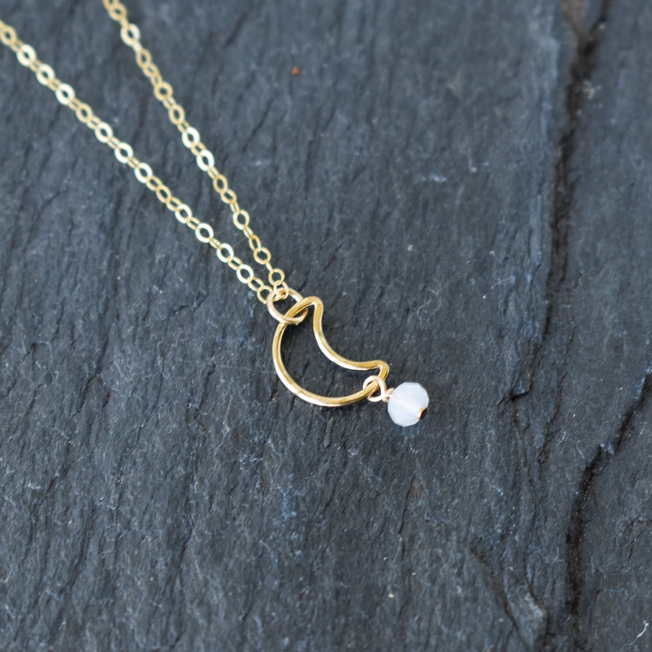 Dangling Crescent Moon Necklace with White Jade Crystal Glass Bead