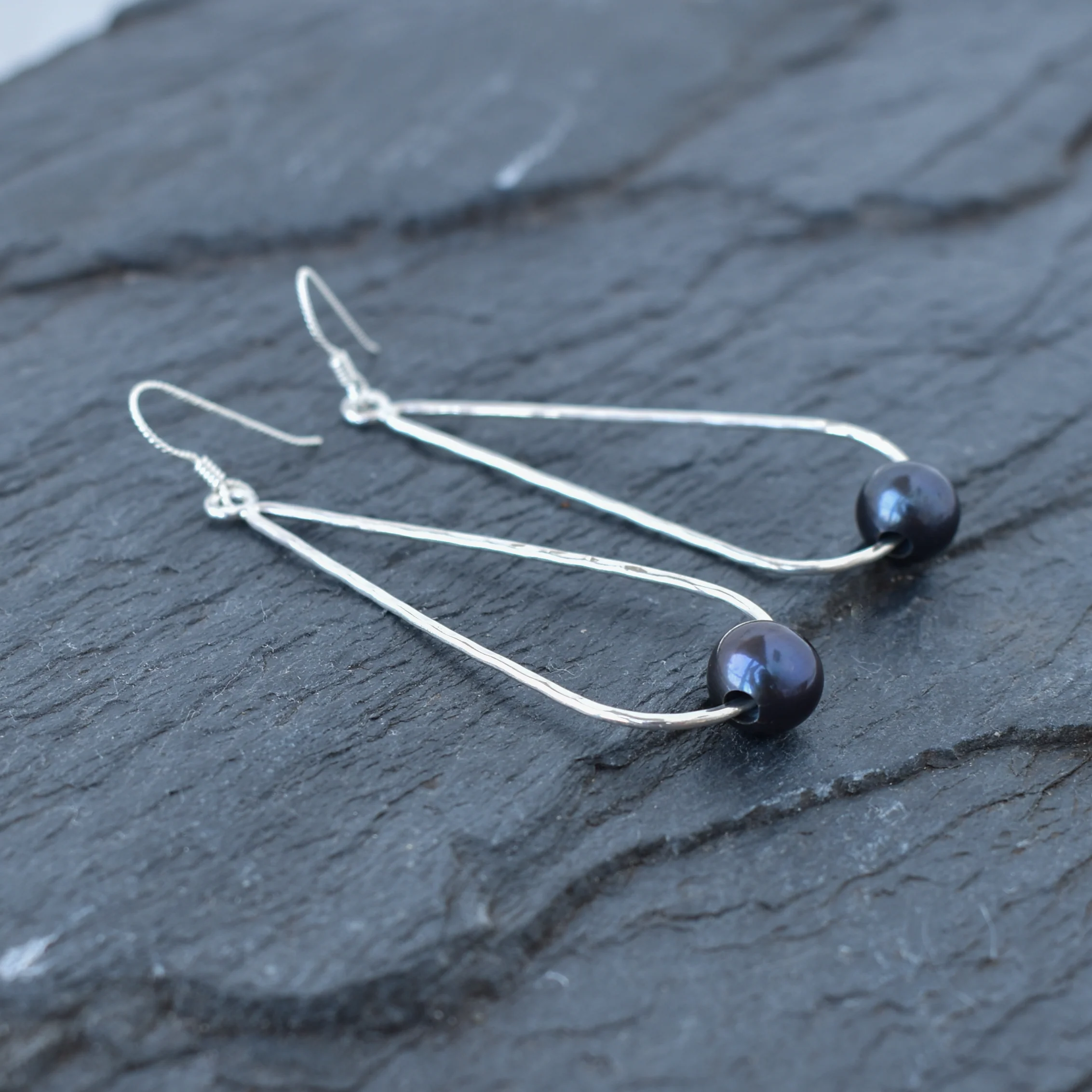 Long Teardrop Earrings with Pearls