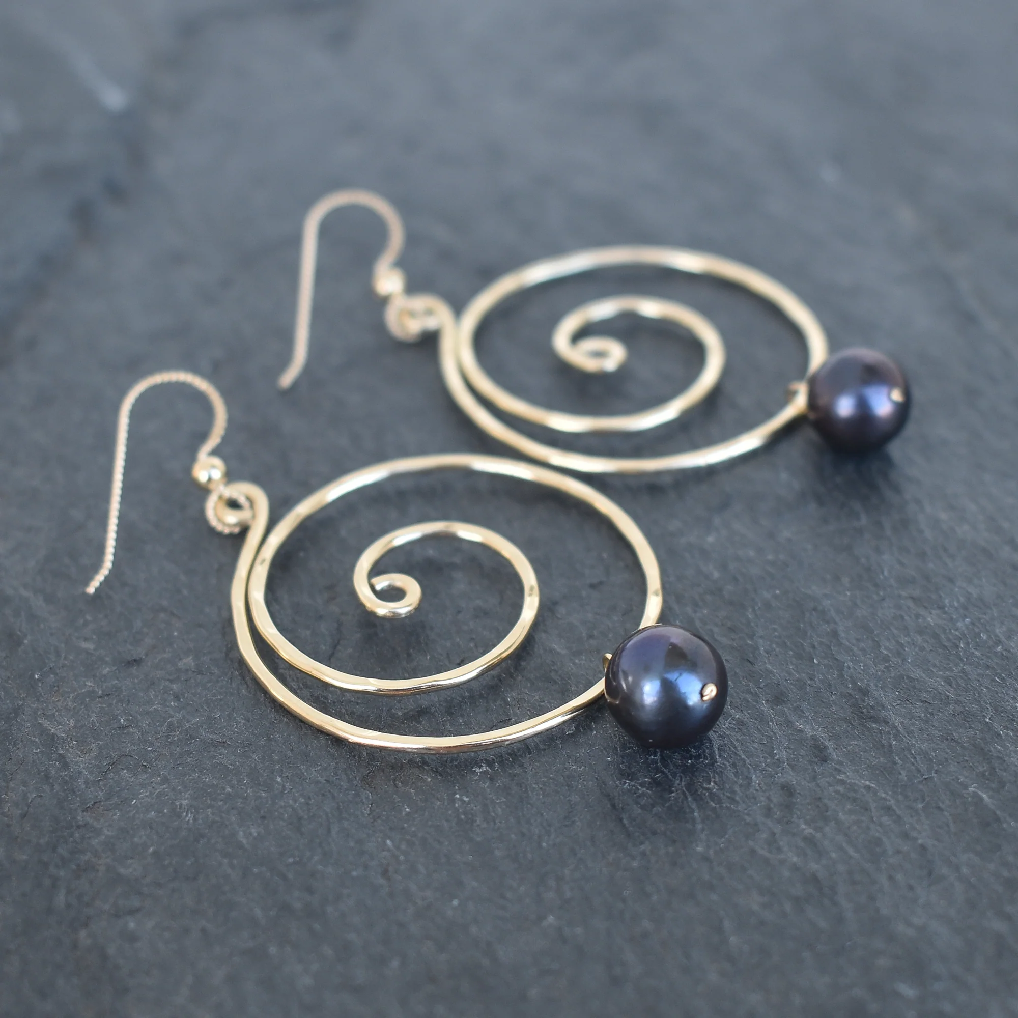 Black Pearl Spiral Earrings - Large